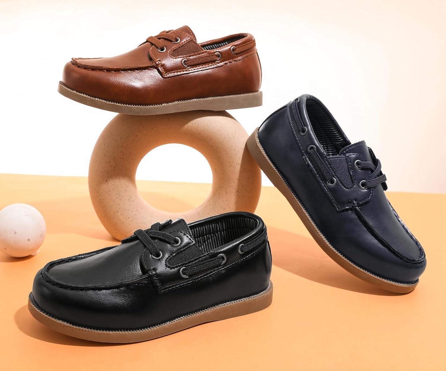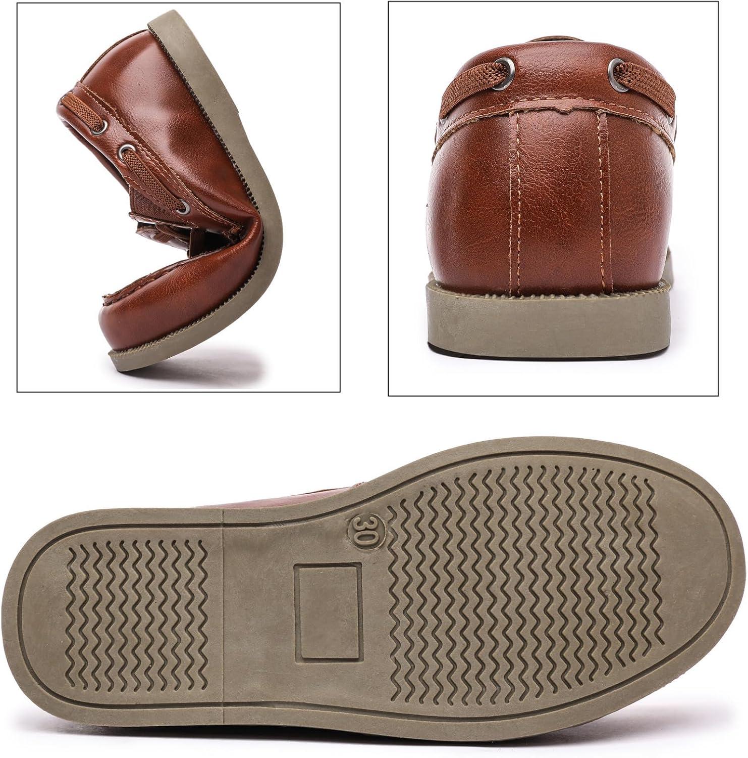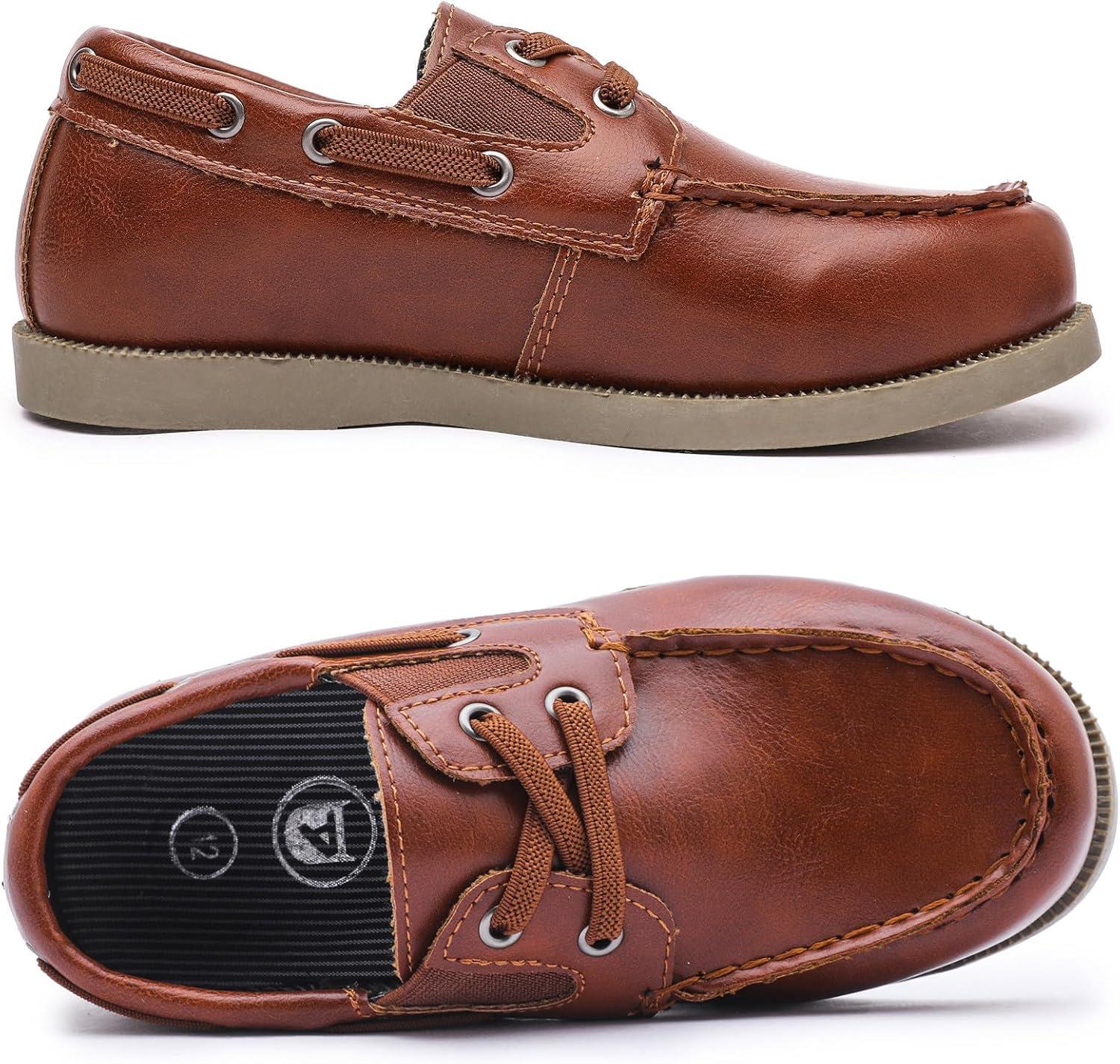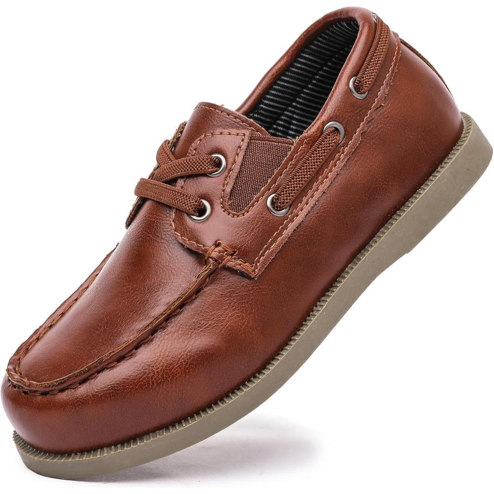 DADAWEN Boys Girls Dress Shoes Casual School Shoes Slip on Loafers Kids Boat Shoe (Toddler/Little Kid/Big Kid)(Brown)