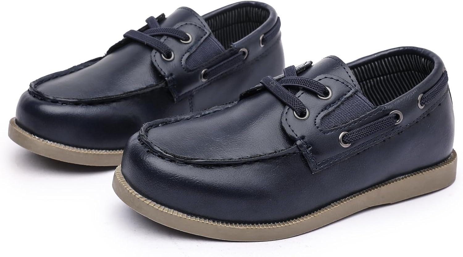 DADAWEN Boys Girls Dress Shoes Casual School Shoes Slip on Loafers Kids Boat Shoe (Toddler/Little Kid/Big Kid)(Dark Blue)