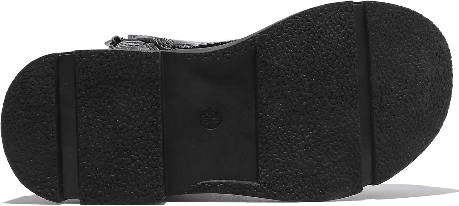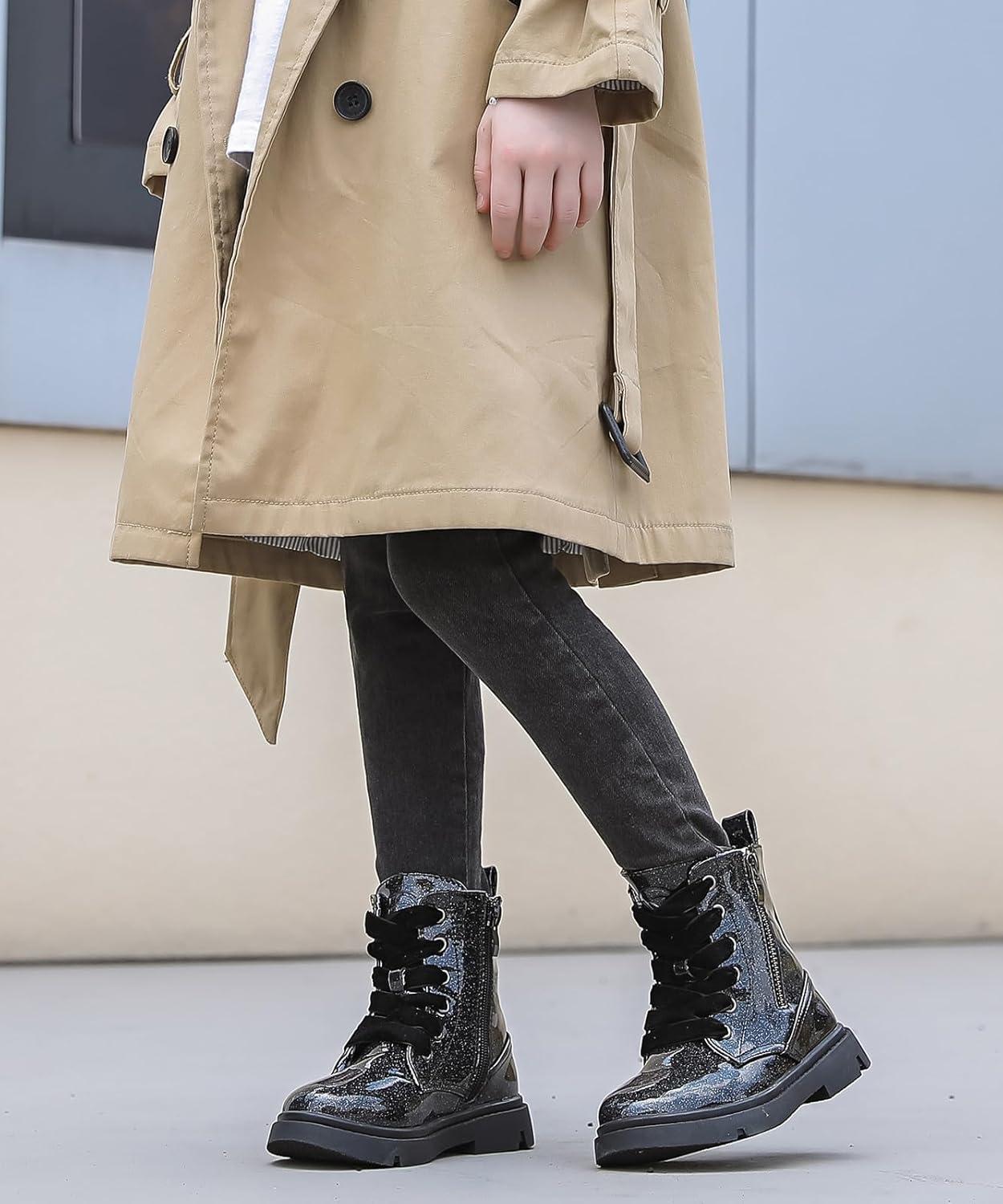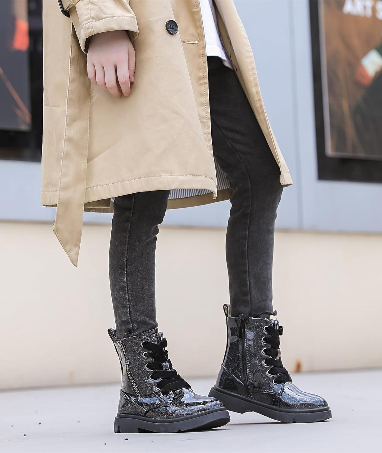 DADAWEN Boys Girls Glitter Ankle Boots Kids Lace Up Waterproof Combat Shoes With Side Zipper for Toddler/Little Kid/Big Kid(Black)