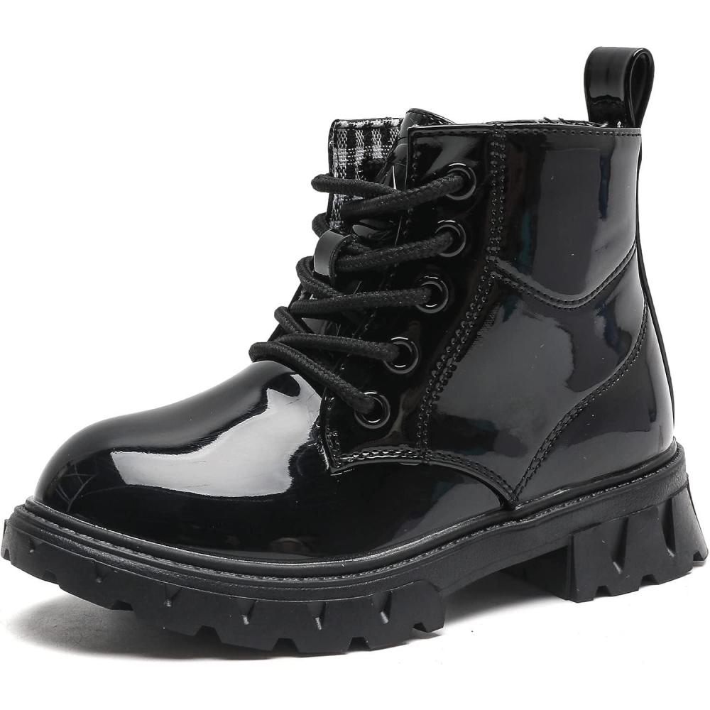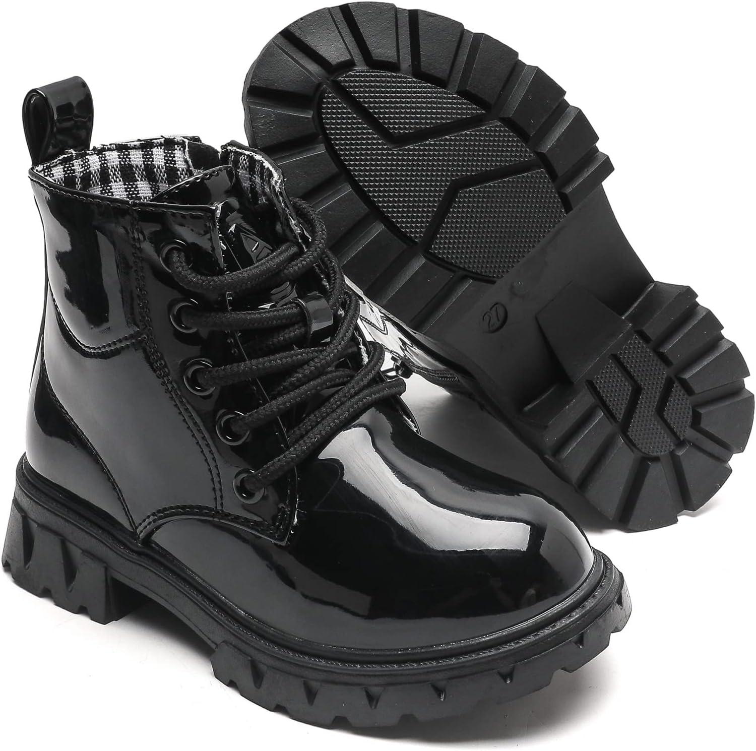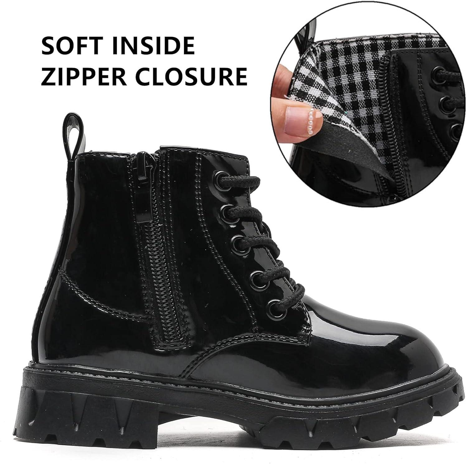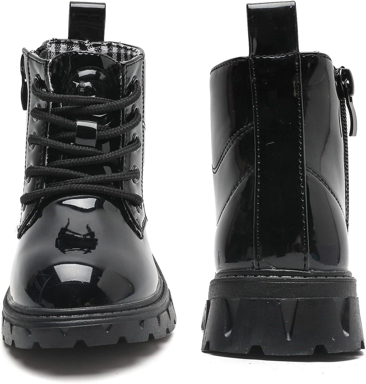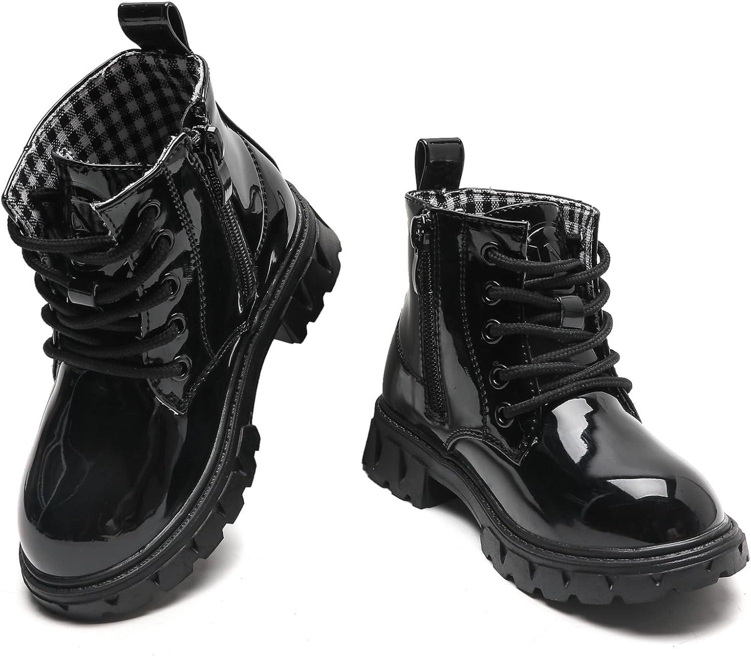 DADAWEN Boys Girls Glitter Ankle Boots Lace Up Waterproof Combat Shoes With Side Zipper for Toddler/Little Kid/Big Kid(01 Black/Leather)