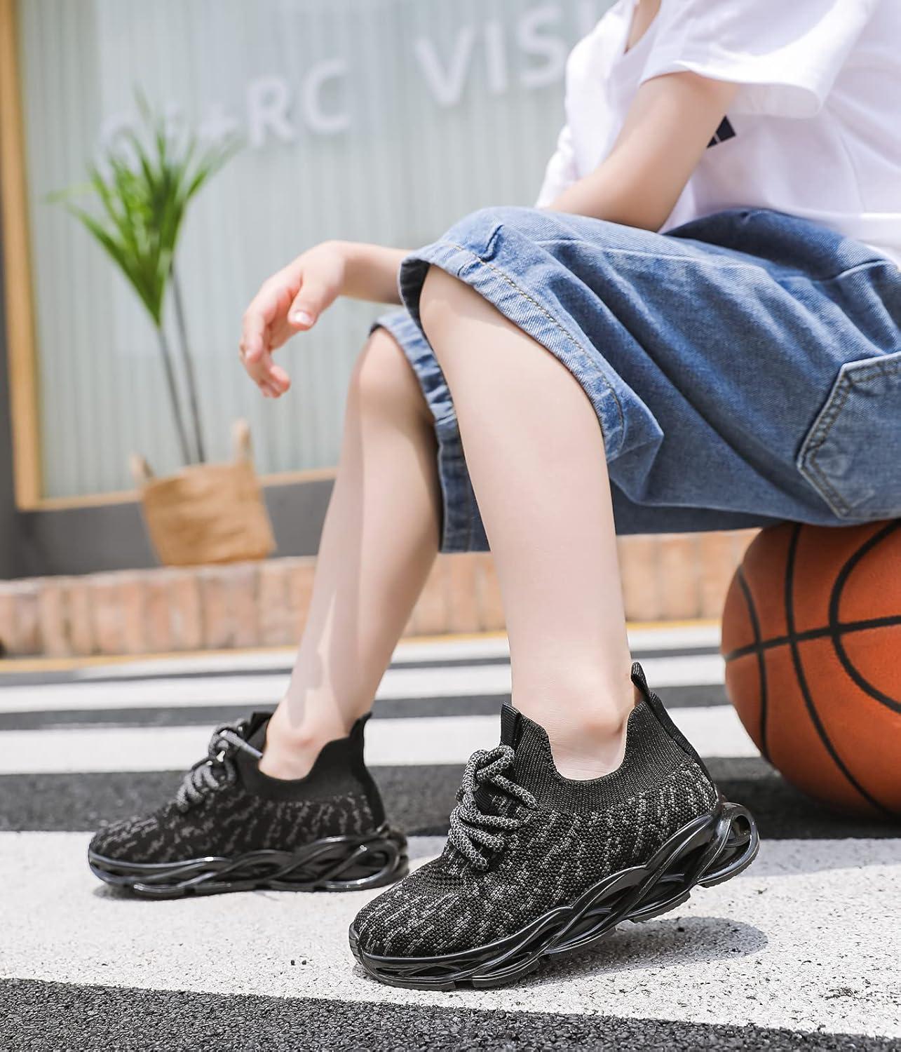 DADAWEN Boys Girls Sneakers Kids Lightweight Breathable Tennis Athletic Running Shoes for Toddler/Little Kid/Big Kid(Black)