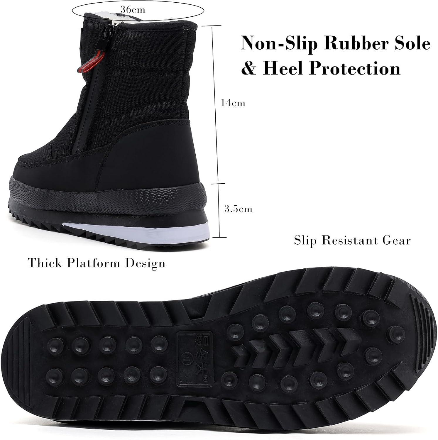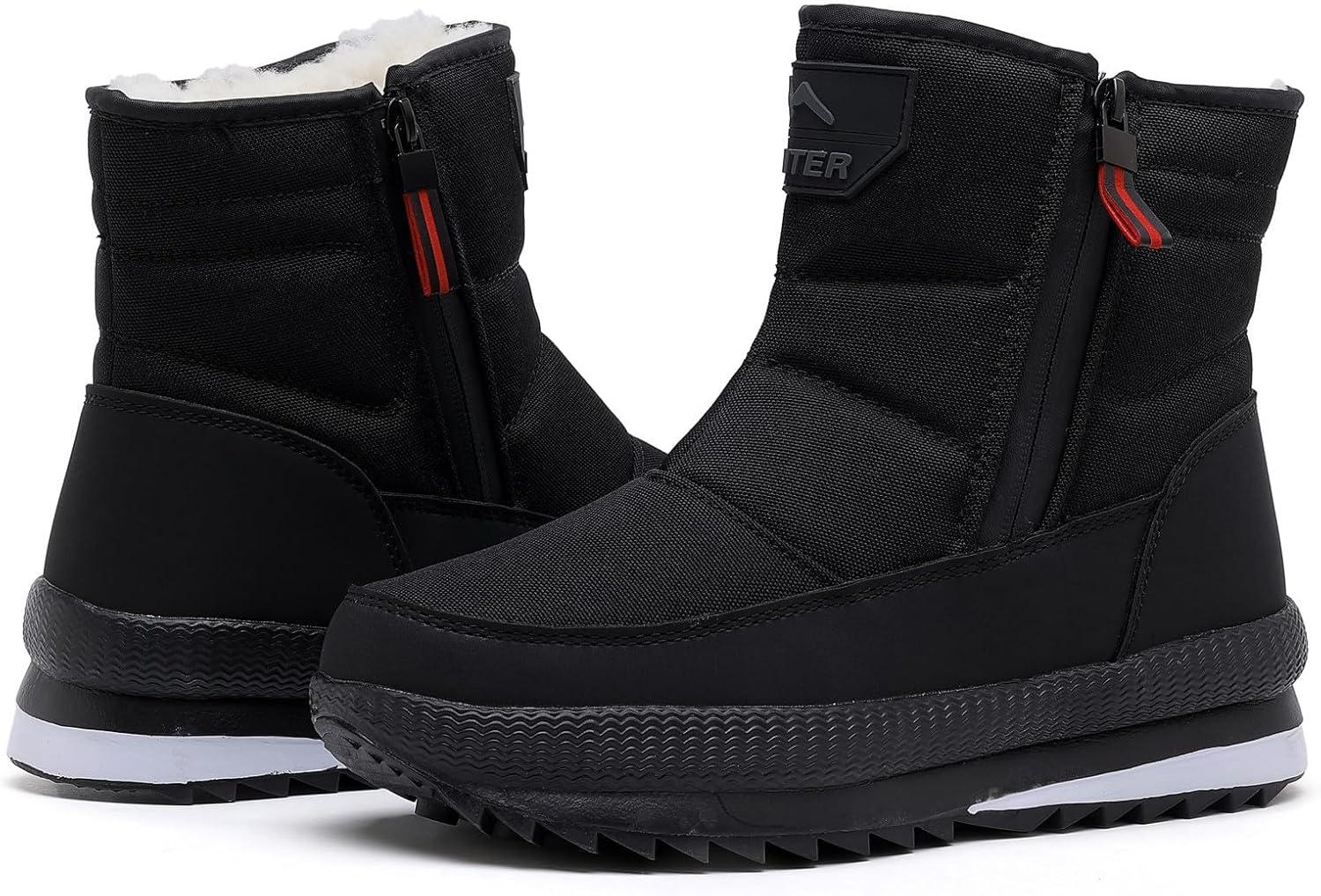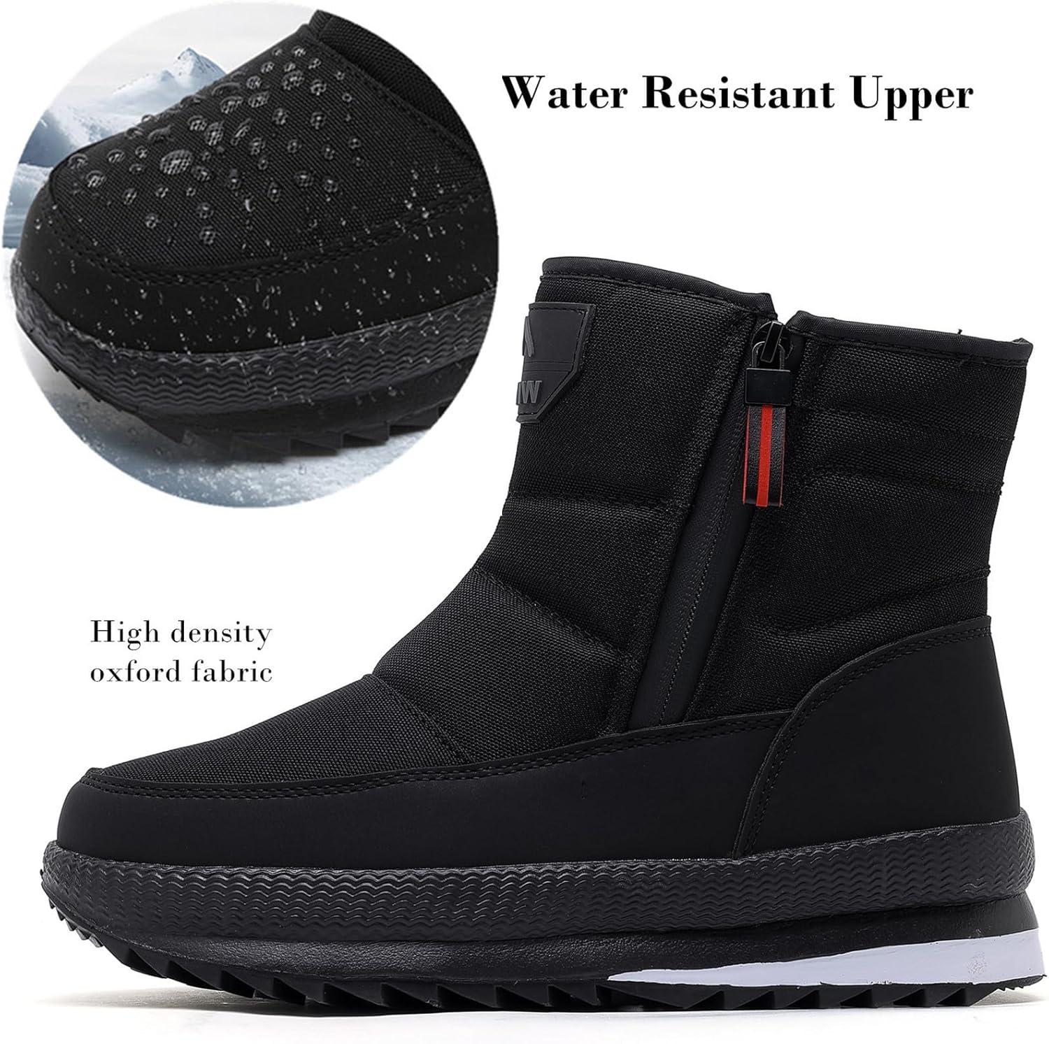 DADAWEN Mens Waterproof Winter Snow Boots Warm Fur Lined Ankle Boots Zipper Closure Slip on Outdoor Anti-slip Cold Weather Shoes(Black)